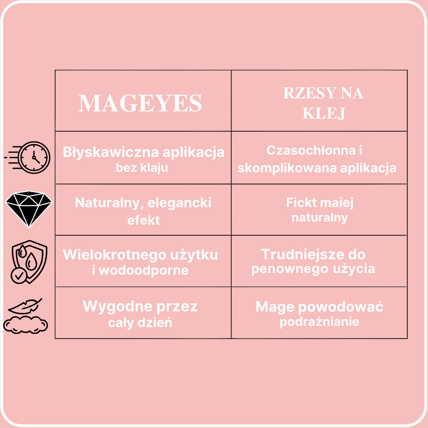 Szybki montaż w kilka sekund. Bez kleju, MagEyes są ultralekkie i zapewniają naturalne wrażenia.